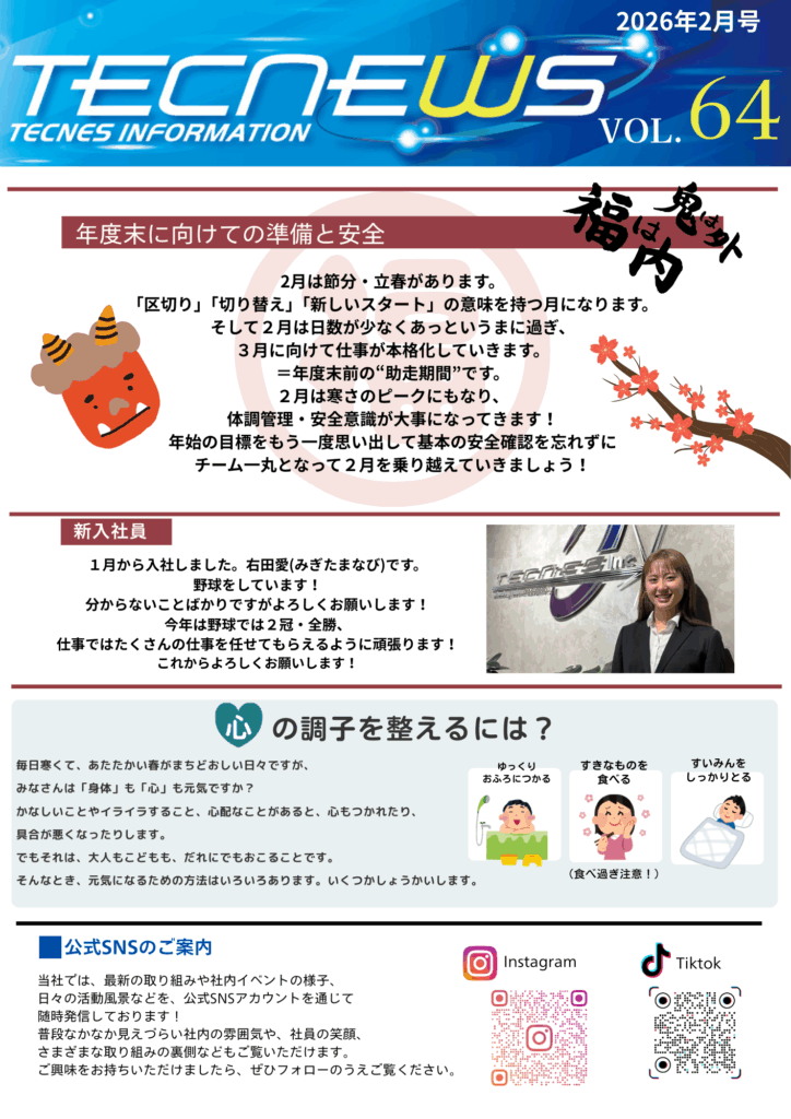 株式会社TECNESでは、社内の取り組みや現場の様子、